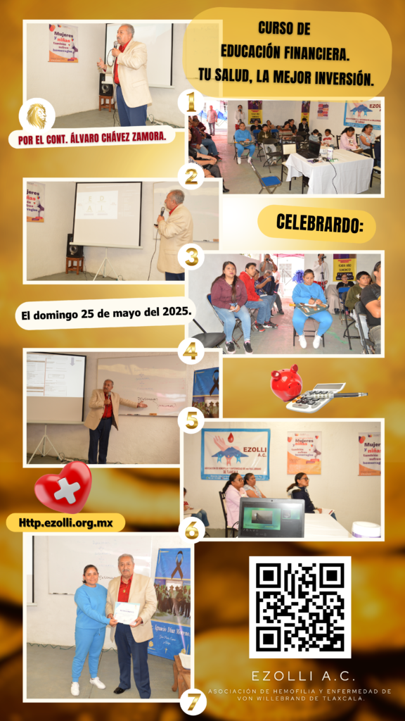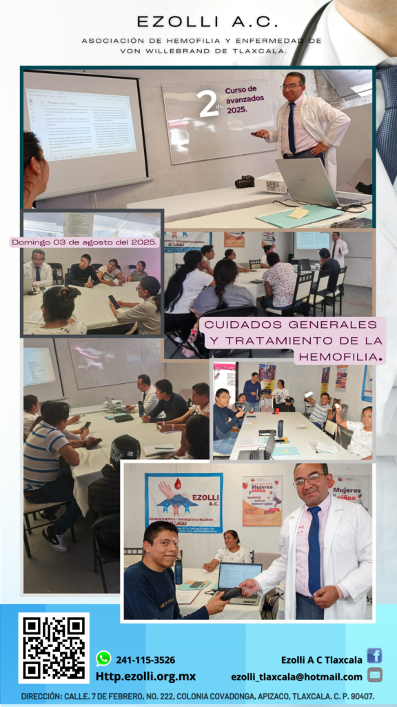Hola Amigos de EZOLLI A. C, nuevamente les compartimos unas imágenes de nuestro segundo curso de avanzados celebrado el pasado domingo 3 de agosto del presente; donde realizamos un estudio para nuestros beneficiarios sobre el tema de hemofilia, abordando el cuidado general del paciente, genética, manifestaciones clínicas, relación con sus niveles de severidad y su tratamiento integral. Se enfatizó la importancia de los cuidados médicos integrales, el trabajo en conjunto con un equipo multidisciplinario, y el rol del paciente en su propio cuidado. También se discutieron aspectos como el estado físico, la práctica de actividades adecuadas, el uso de tratamientos complementarios, terapias de reemplazo del factor, su aplicación domiciliaria, el control de salud, el manejo del dolor, y las precauciones en procedimientos quirúrgicos o dentales. Los asistentes mostraron gran interés y compromiso, especialmente los padres jóvenes, al reconocer la importancia de reforzar constantemente el conocimiento sobre la enfermedad se sus hijos. Al finalizar, se entregaron artículos significativos a todos los participantes como agradecimiento por su participación e interés por el aprendizaje. ¡Bendiciones para todos!