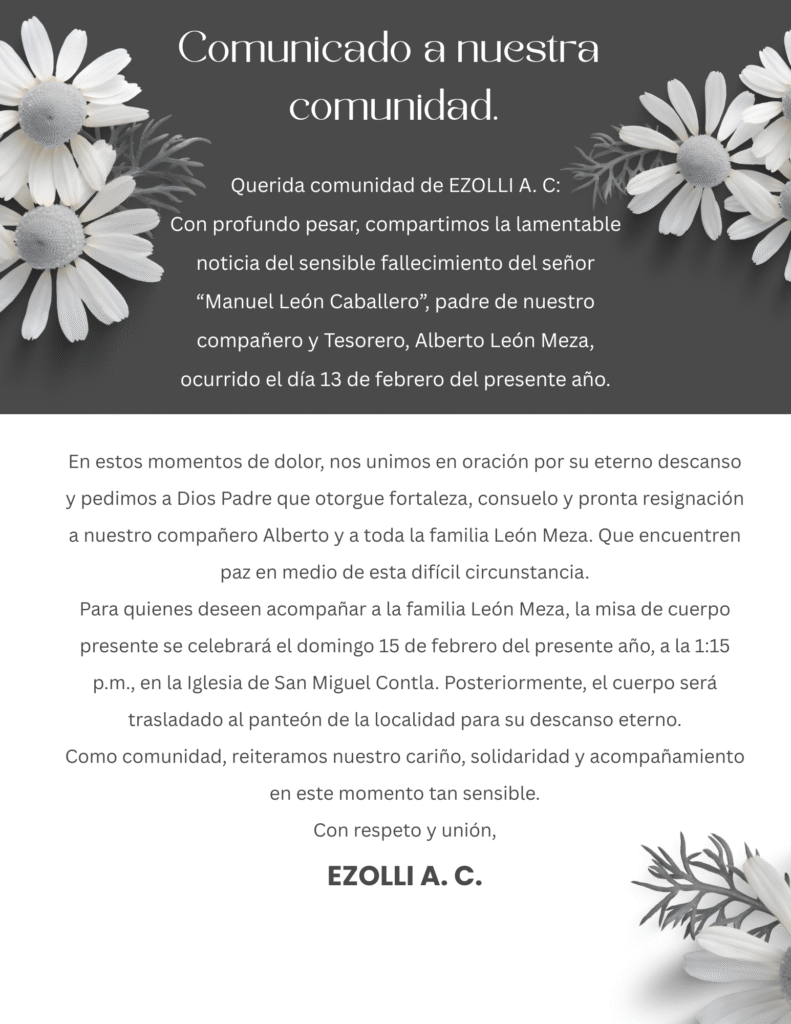Derivado de esta situación, informamos que la actividad programada para este domingo 15 será pospuesta para el próximo domingo 22 de febrero del presente, agradecemos su comprensión y solidaridad.
