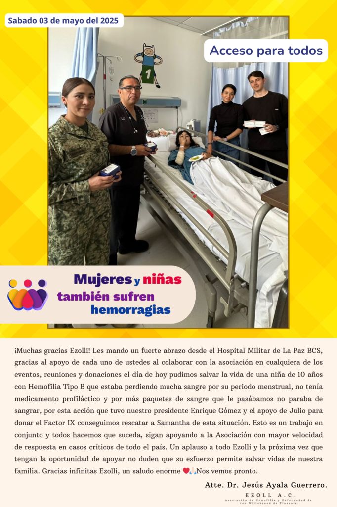 Hola a todos los Amigos de EZOLLI A. C; les compartimos un mensaje que llena de profunda alegría los corazones de nuestra familia EZOLLI y a la gran comunidad de coagulopatias de nuestro país. ¡Bendiciones para todos!